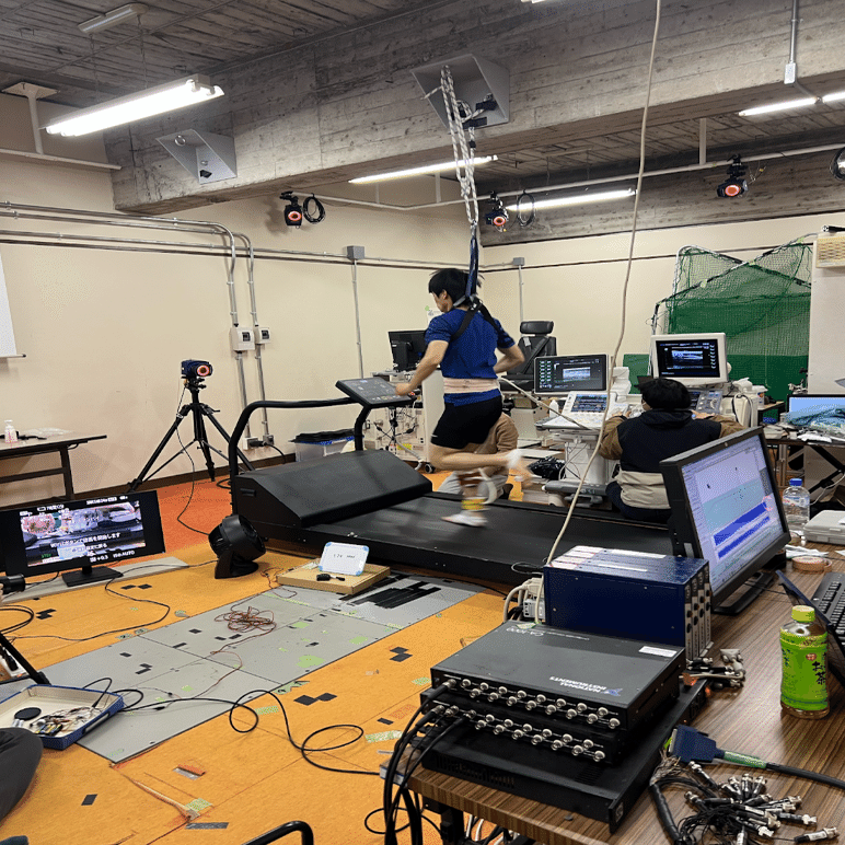 また、アキレス腱についても研究しています。一般的に「アキレス腱はバネの役割を果たす」と言われていますが、それを検証するために一流のスプリンターに超音波装置を装着して走行中の筋肉や腱の双方の動きを測定するなど、詳細な解析を進めているところです。