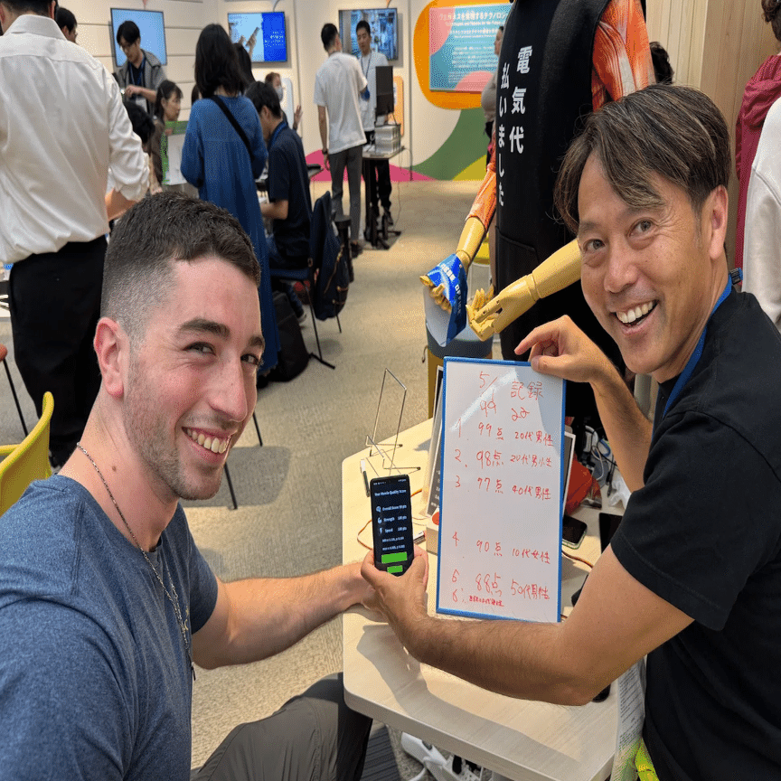 近年の研究では「筋肉の質の低下は死亡リスクと密接に関係する」とも言われているため、健康寿命の延伸にも貢献したいと考えています。これは日本の革新的な技術として認められ、大阪・関西万博でゴールデンウィークに「大阪ヘルスケアパビリオン」のリボーンチャレンジに出展し、おかげさまで大盛況でした。